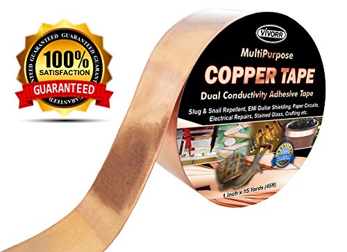 - Product Name: Copper Foil Tape with Dual Conductive Adhesive, 1 Inch x 15 Yards (45ft) - Slug & Snail Repellent, EMI Shielding, Electrical Repairs, Paper Circuits, Crafting, Stained Glass etc - Extra Long Roll